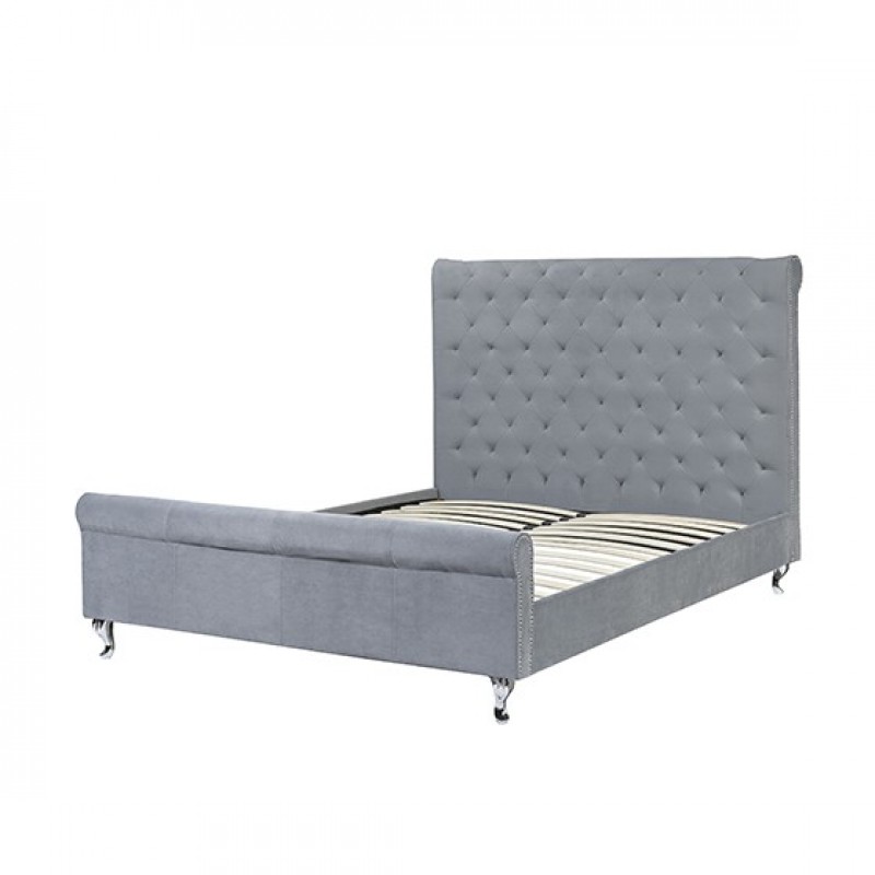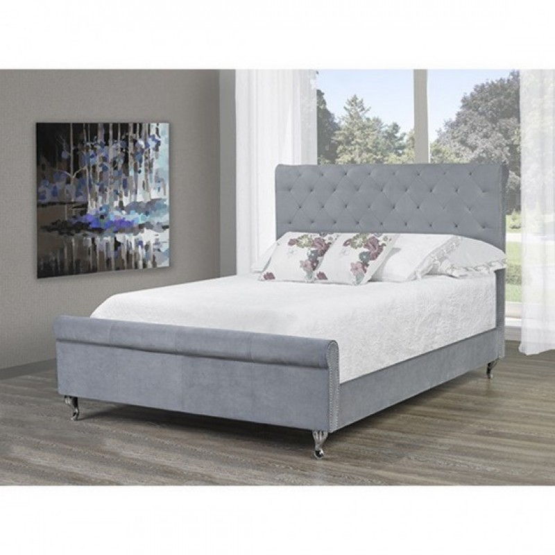 You will be looking for an excuse to go to bed when you incorporate this beautiful bed to your rest area. Very modern, but with a traditional look, this bed frame is wrapped tightly in multi-layered crossed track fabric, and rests on solid curved metal plated legs. The bed frame retains attention with its diamond padding with studded details. A hint of luxury that balances beautifully with this incredibly attractive bed.