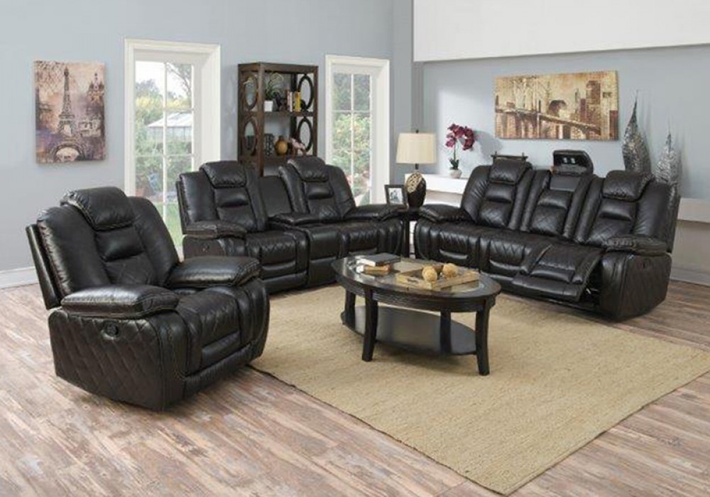3PCS LEATHERGEL DESIGNER SEATING GLIDER RECLINER SOFA SET WITH DROP DOWN TABLE AND HEADR LIGHT IN SOFA, LOVESEAT WITH CONSOLE , GLIDER RECLINER WITH SWIVEL.