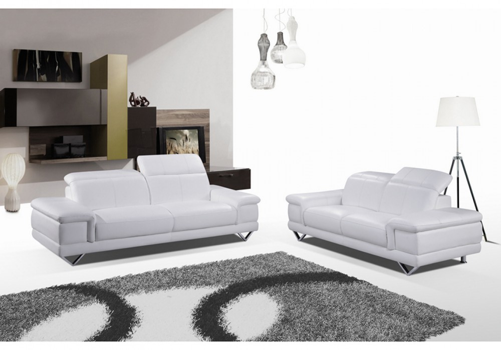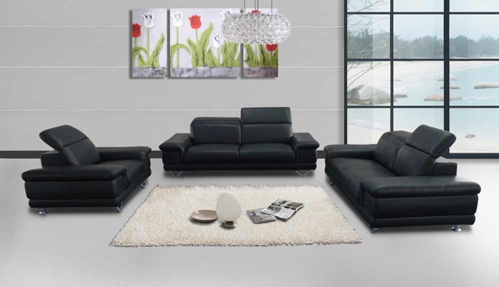 MODERN 3PCS SOFA SET WITH ADJUSTABLE HEAD REST AND CHROME LEGS IN BONDED LEATHER