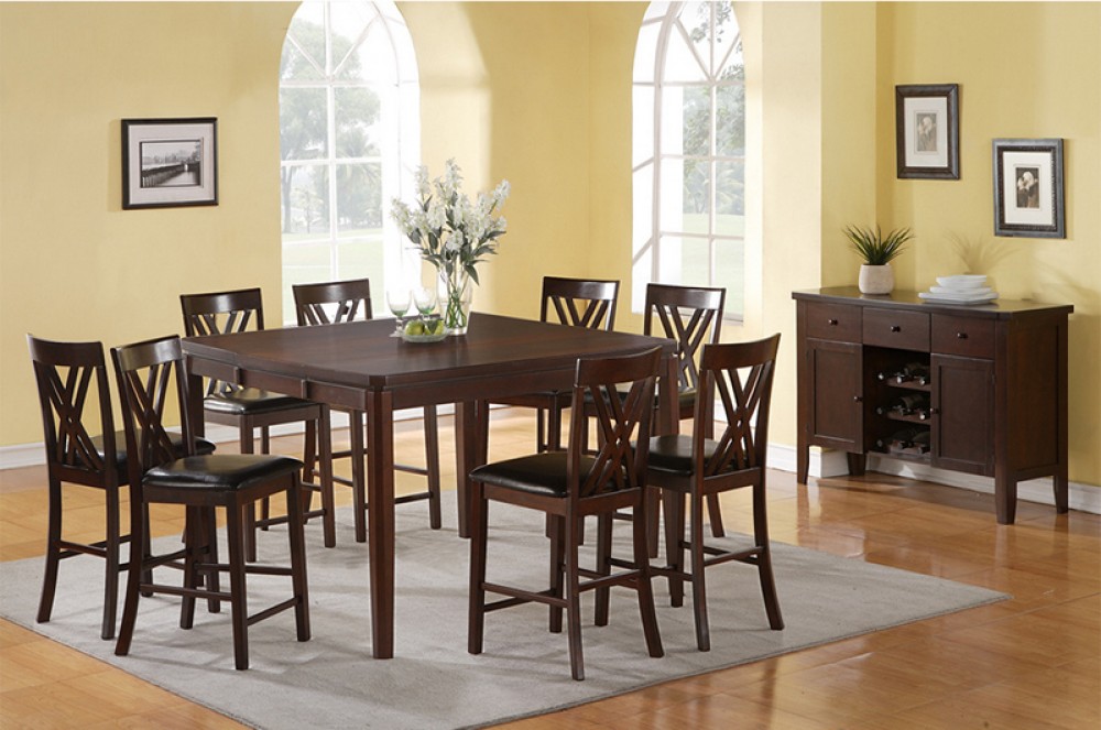 10-PIECE PUB HEIGHT DINNING TABLE SET W/LAZY SUSAN