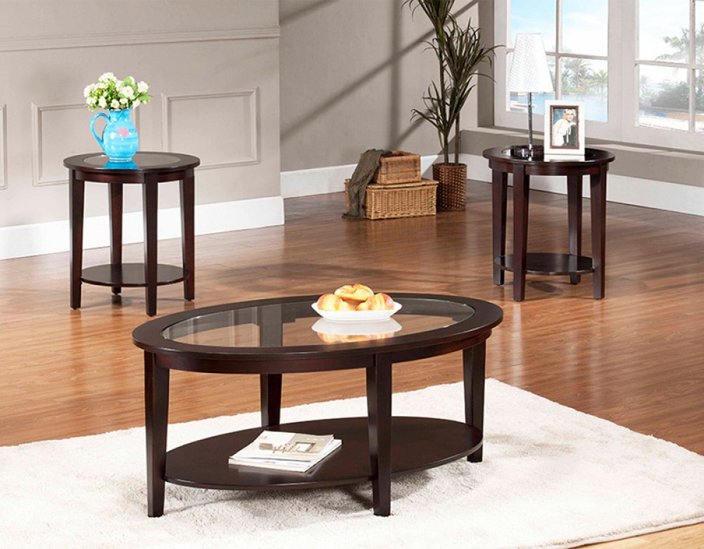 3 PIECE COFFE TABLE SET WITH GLASS INSERT
