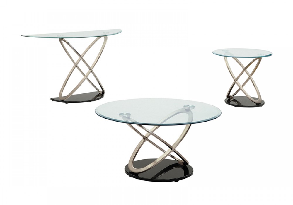 3PCS GLASS COFFEE TABLE SET WITH BRUSHED NICKEL BASE