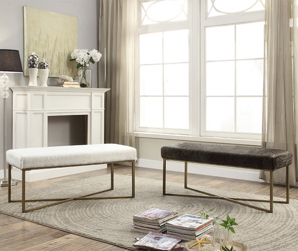 FUR FABRIC BENCH WITH STEEL LEGS IN GOLD FINISH
